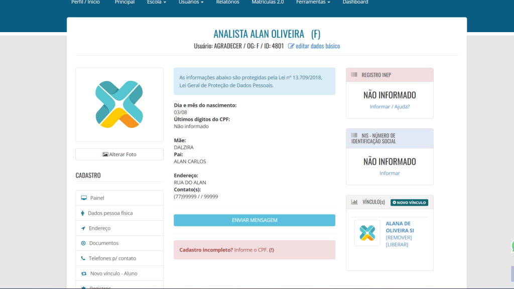 Essa estrutura elimina a necessidade de criar cadastros duplicados para um mesmo usuário, evitando inconsistências na base de dados, conflitos de permissões e problemas de rastreabilidade. Todas as informações ficam centralizadas em um único perfil, o que fortalece a integridade cadastral e facilita a administração dos usuários no sistema.