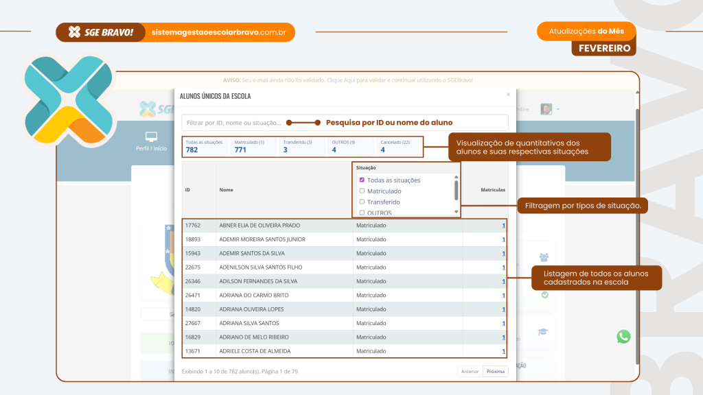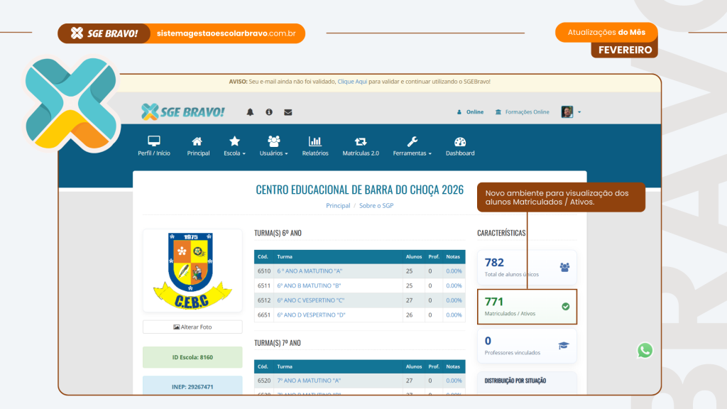Com esse novo ambiente, a escola ganha mais controle, transparência e precisão nas informações, fortalecendo a organização administrativa e garantindo uma gestão mais eficiente dos dados escolares.