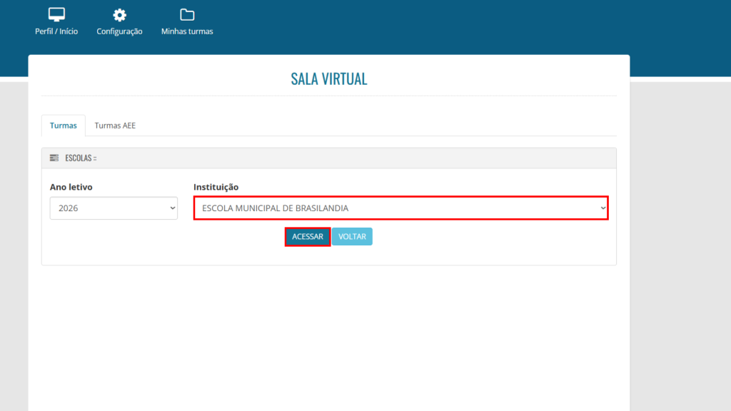 2. Acesse a turma desejada